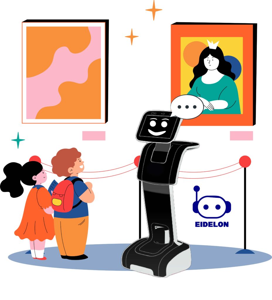 EIDELON is a project that aims to reshape the relationship between culture and technology by introducing virtual avatars capable of communicating with visitors in natural language. These robots, installed on mobile devices, not only answer visitors' questions but also accompany them throughout the museum, creating a unique and engaging connection with the artwork and the cultural context.